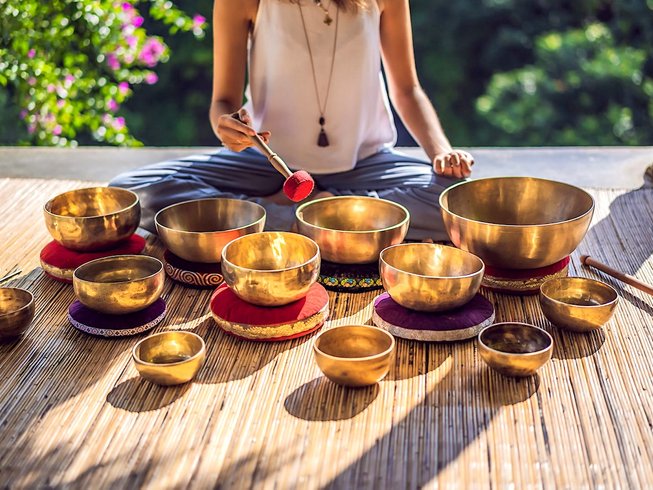 Uses traditional metal bowls to create deep, resonant sounds that clear emotional blockages and harmonize your chakras.